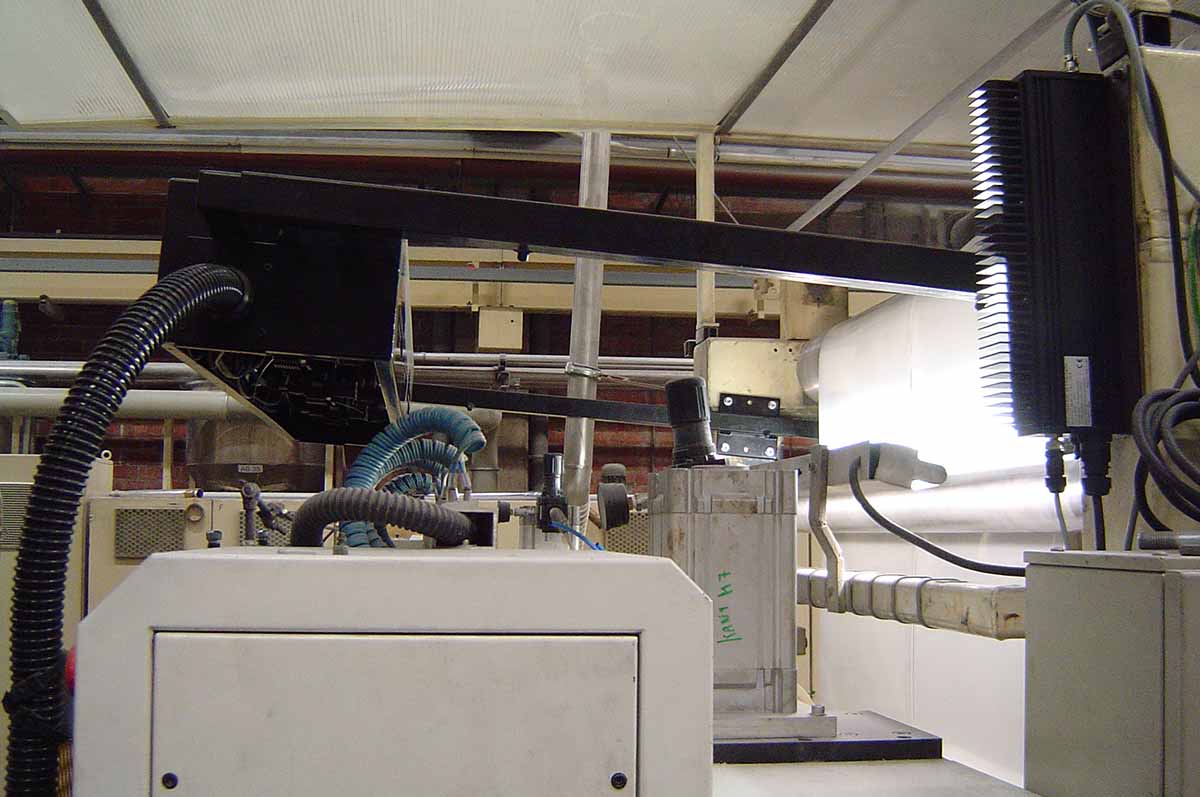 Cameras and lightsources are mounted at specific angles to maximise the contrast of possible defects in the material.